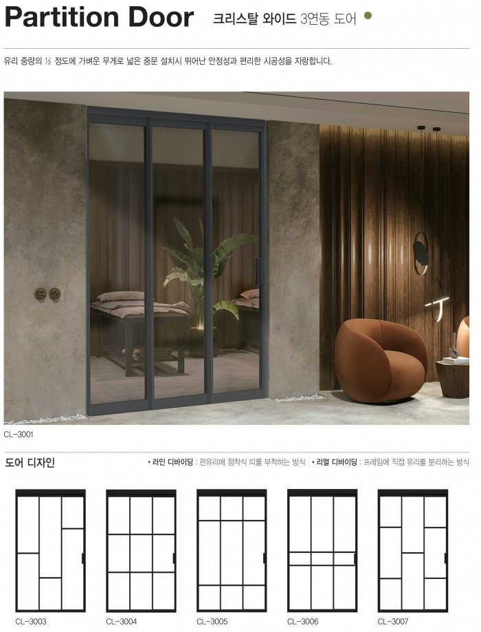 실내도어 | ReDoor_크리스탈와이드3연동,원슬라이딩