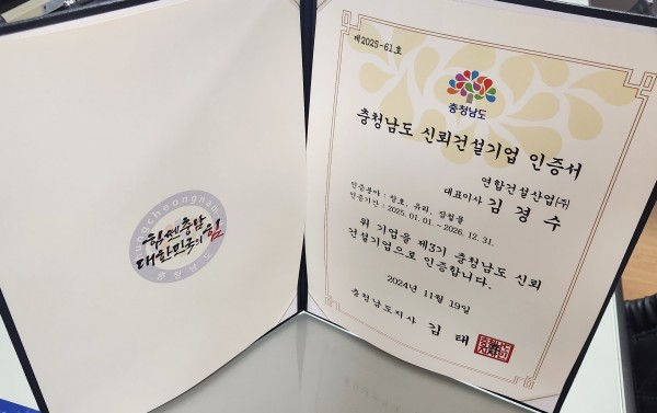 충청남도 신뢰건설기업 인증서 > 공지사항
